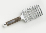 - Густые и толстые волосы. Подойдут щетки с более прочными и жесткими зубцами, которые аккуратно распутают пряди, не выдергивая волосы. Выбирайте щетку с комбинированной щетиной или с отдельными длинными и редкими жесткими зубьями: так щетка будет доставать до кожи, а не скользить по поверхности волос.